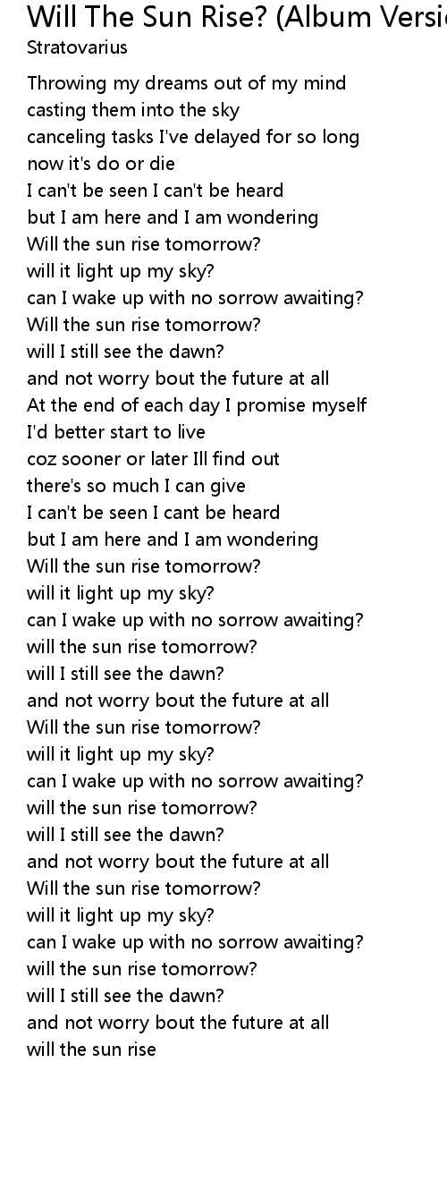 will the sun rise |