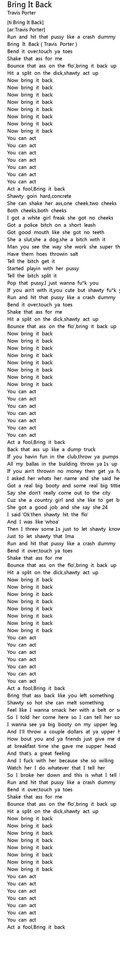 | [00:01.58] | Bring It Back Travis Porter |