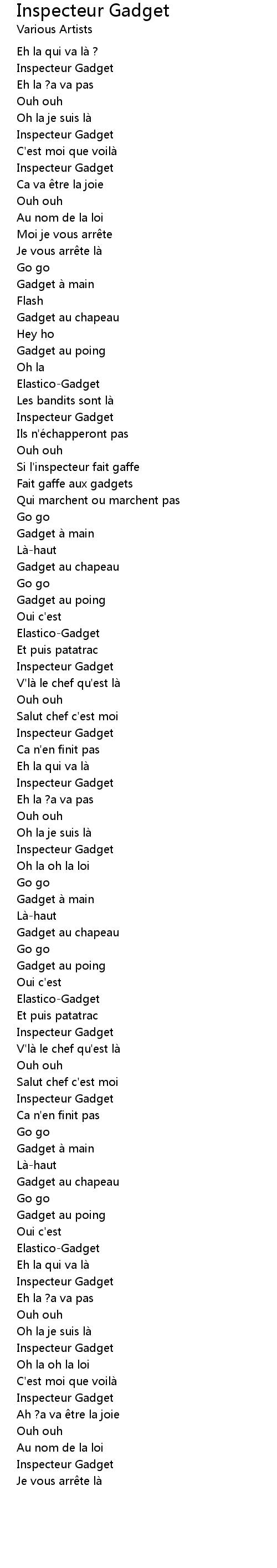 | 歌曲 | Inspecteur Gadget |