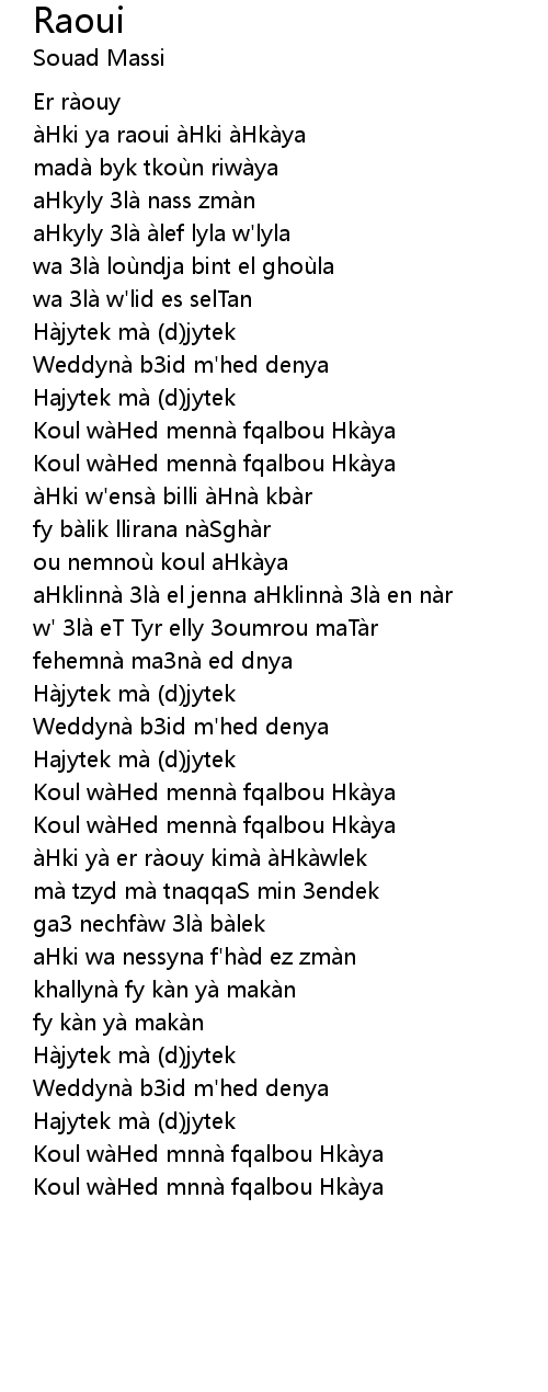 | Koul wà Hed mnnà fqalbou Hkà ya | |