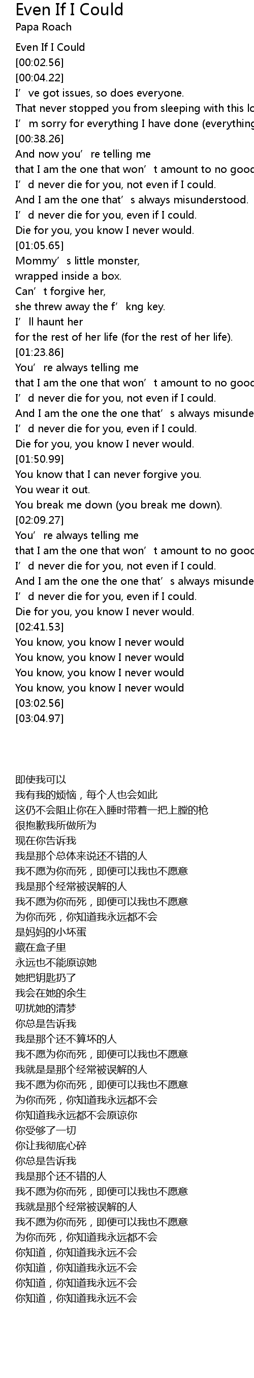 | [00:44.79] | I’d never die for you, not even if I could. |