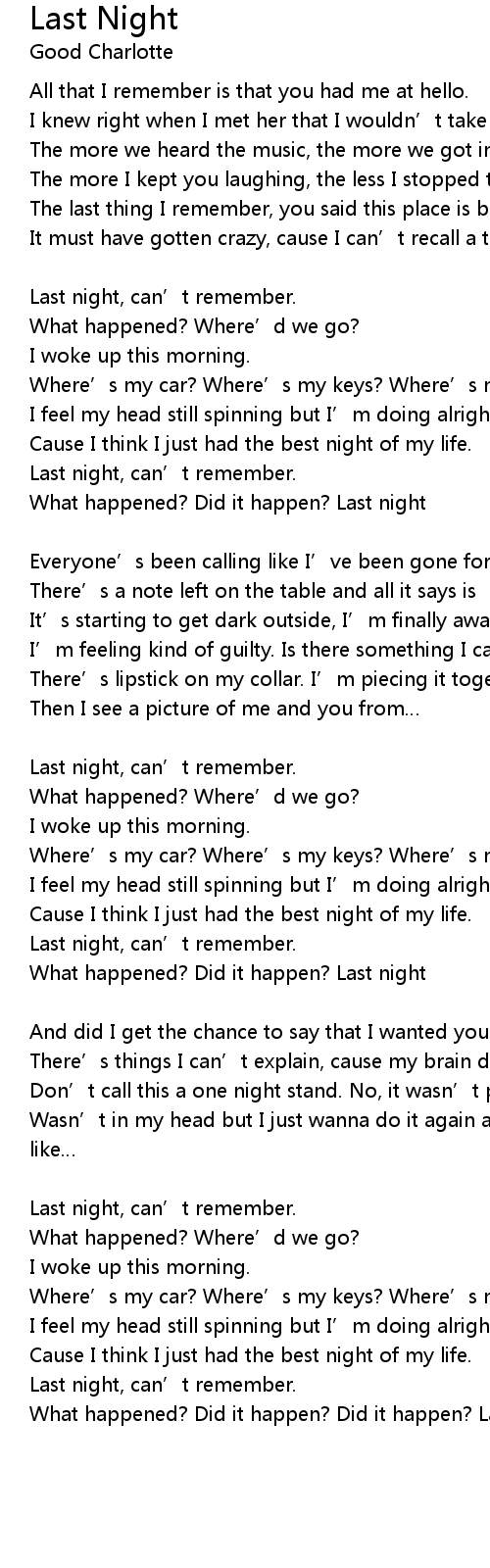 | It must have gotten crazy, cause I can' t recall a thing. | |