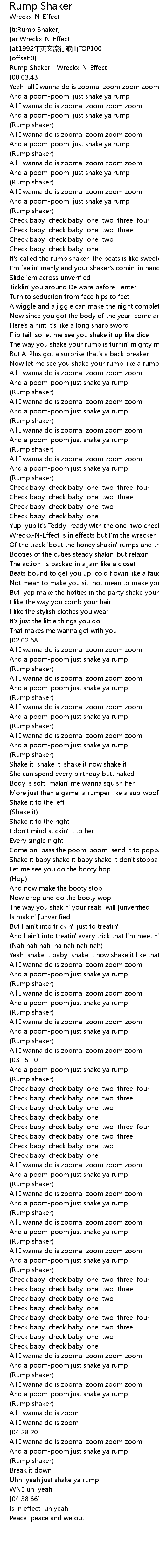 | [00:01.12] | Rump Shaker WreckxNEffect |