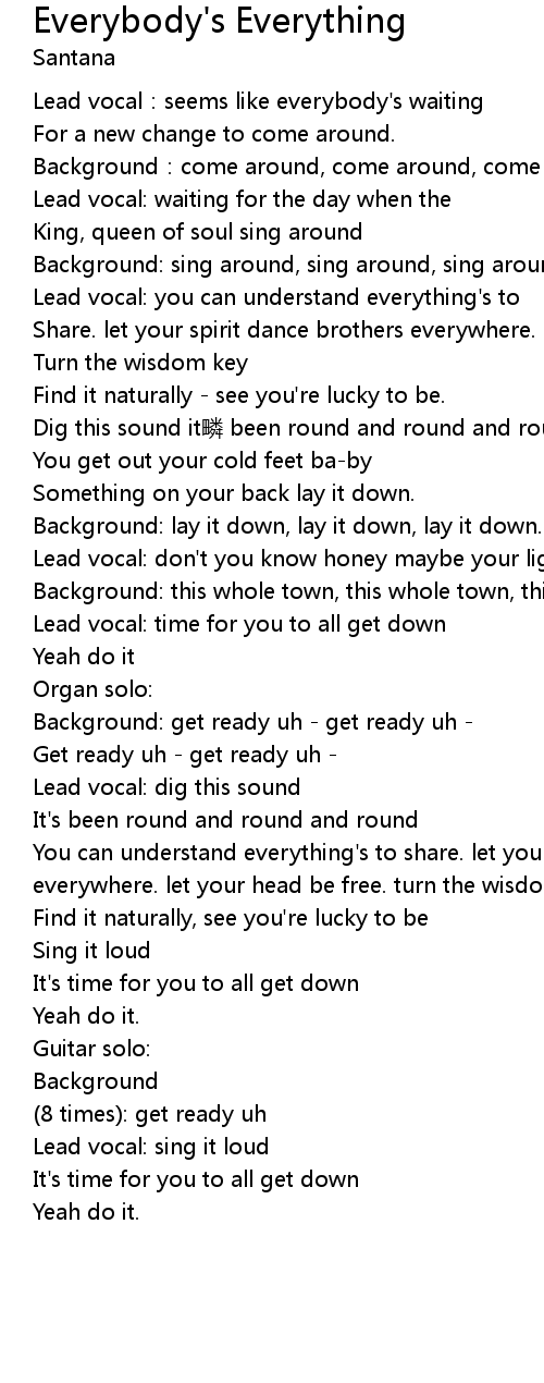 | 歌曲 | Everybody's Everything |