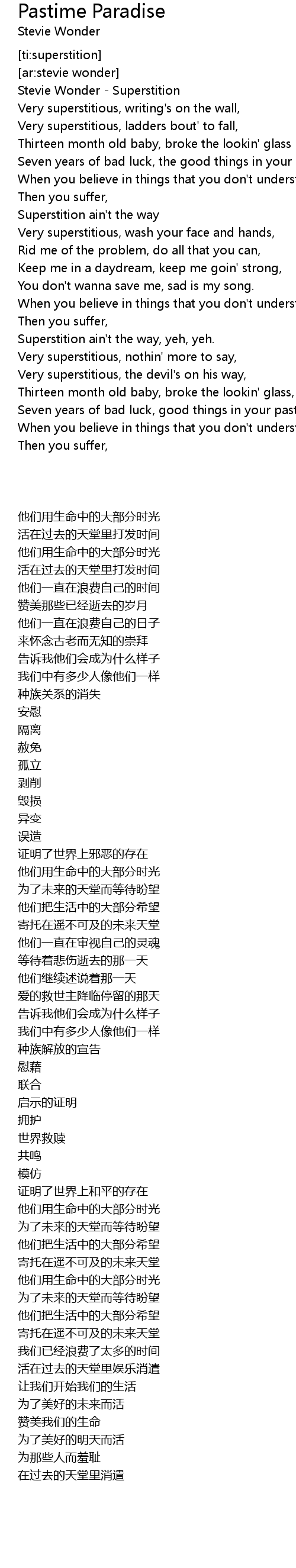 | [02:13.22] | Superstition ain't the way, yeh, yeh. |