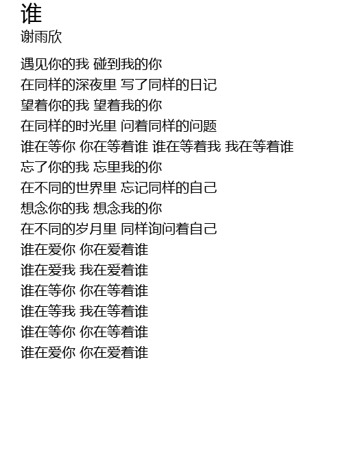 | 歌曲 | 谁 |