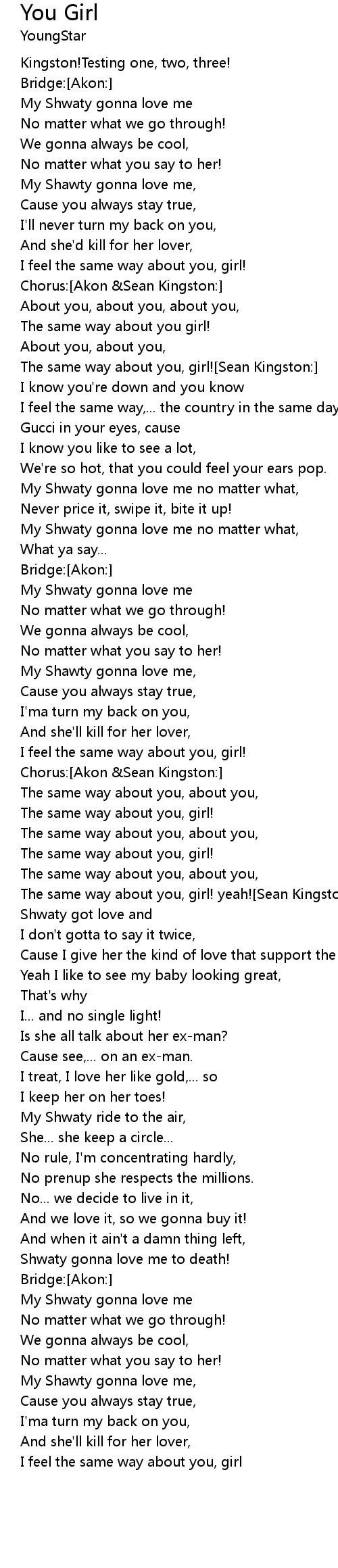 The same way about you, girl! yeah![Sean Kingston:] |