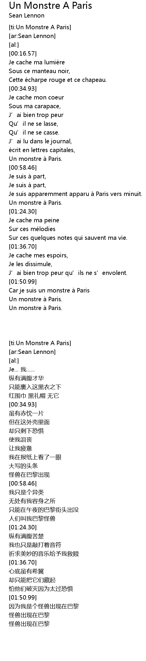 | [01:51.94] | Car je suis un monstre a Paris |