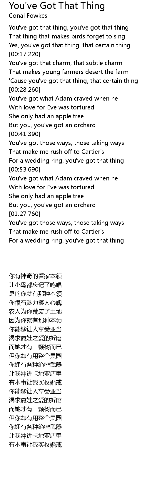 You've got that thing, you've got that thing |