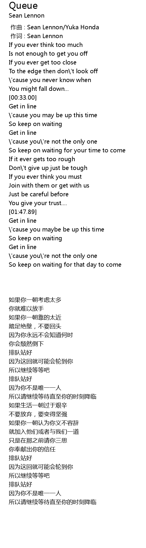 | [00:00.00] | zuo qu : Sean Lennon Yuka Honda |