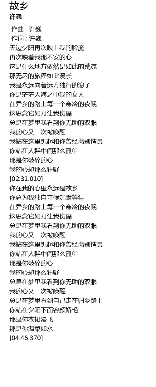 | [04:17.190] | 总是在梦里看到自己走在归乡路上 |