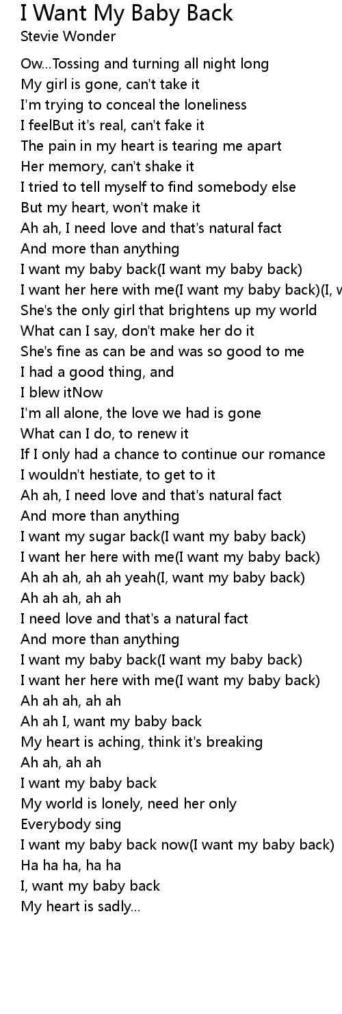 I want my baby back now(I want my baby back) |