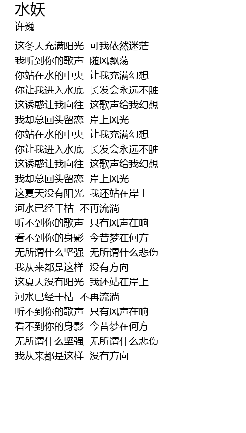 | [00:52.499] | 你让我进入水底 长发会永远不脏 |