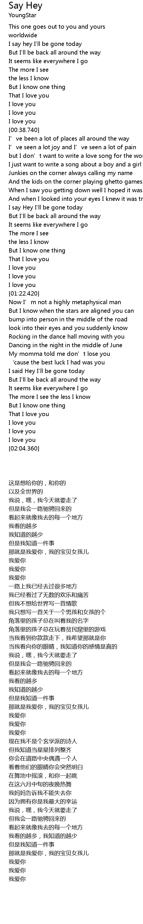 | [00:19.540] | I say hey I' ll be gone today |