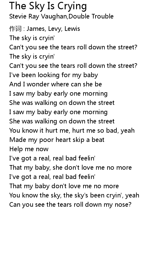 | You know the sky, the sky' s been cryin', yeah | |