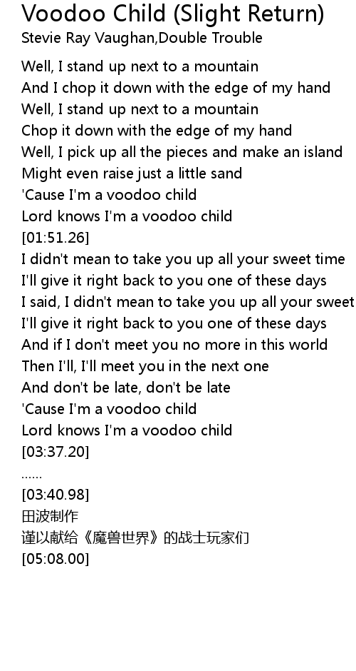| [01:42.78] | ' Cause I' m a voodoo child |