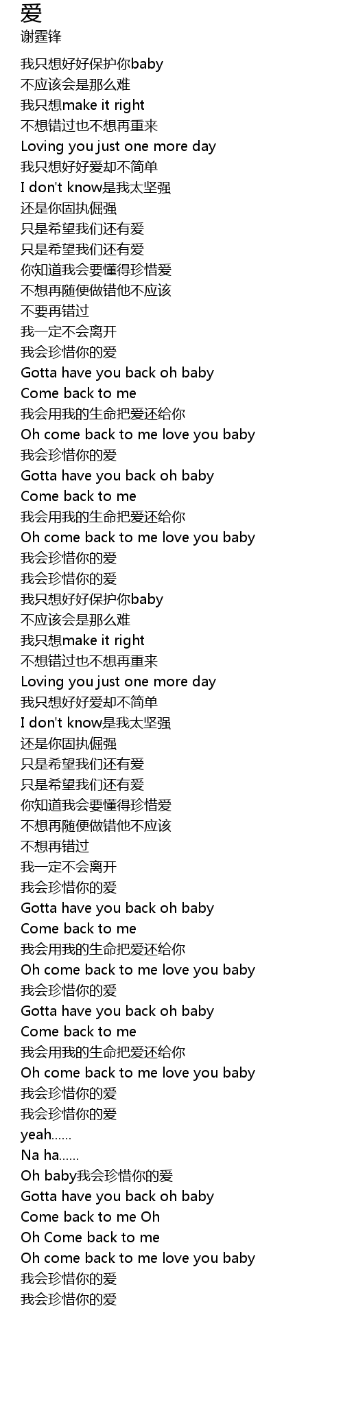 | [01:41.530] | Oh come back to me love you baby |