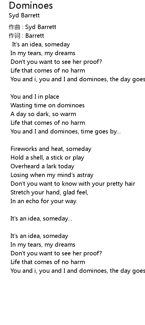 | You and i, you and I and dominoes, the day goes by... | |
