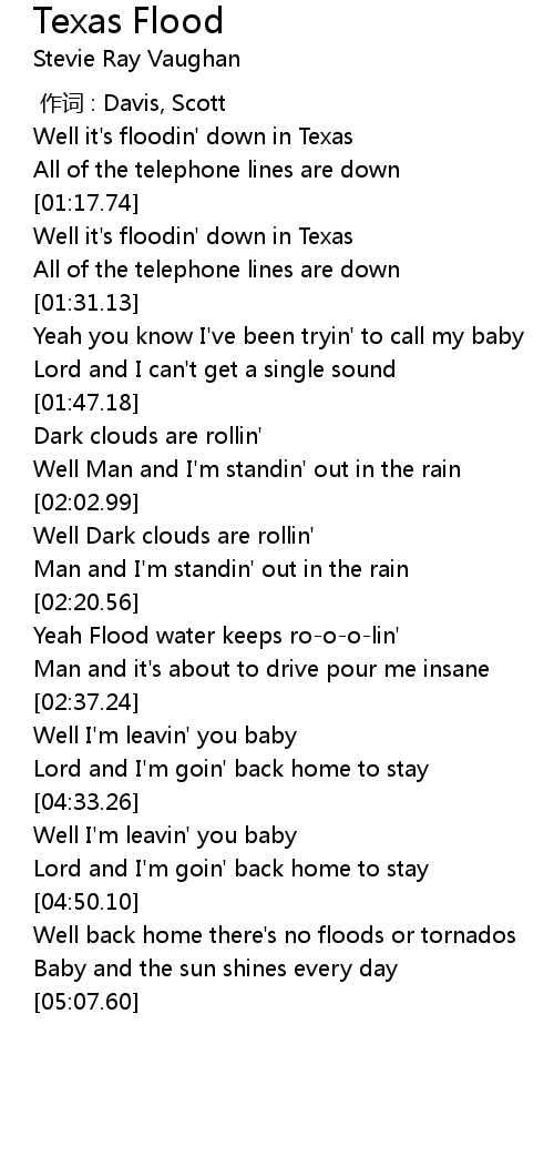 | [01:20.57] | Well it's floodin' down in Texas |