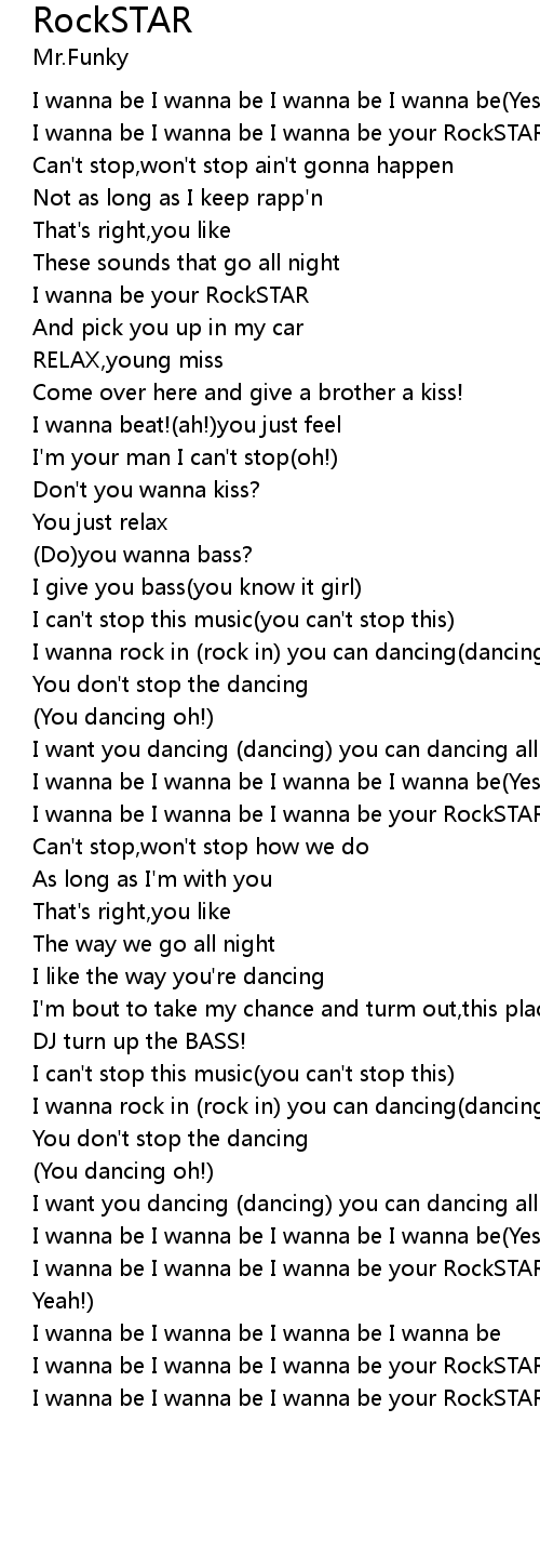 [01:35.37] I wanna be I wanna be I wanna be your RockSTAR(Mr.Funky Funky Oh! Yeah!)