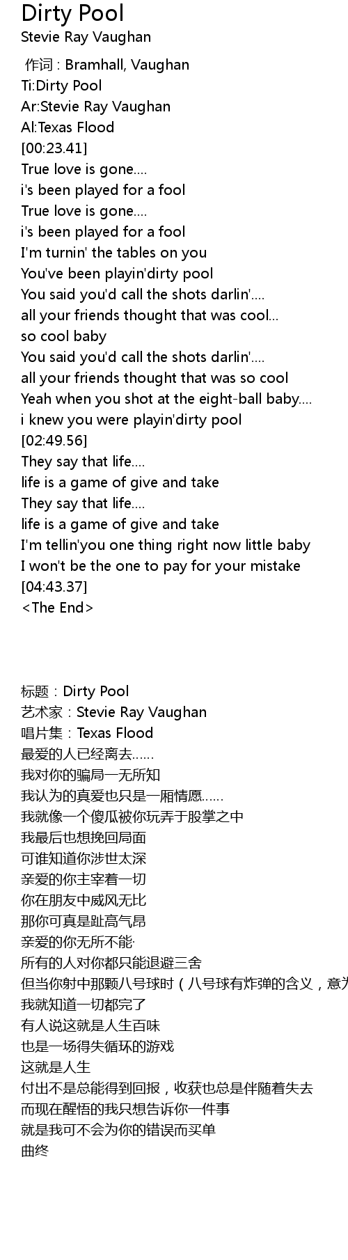 | [02:34.08] | Yeah when you shot at the eight-ball baby.... |