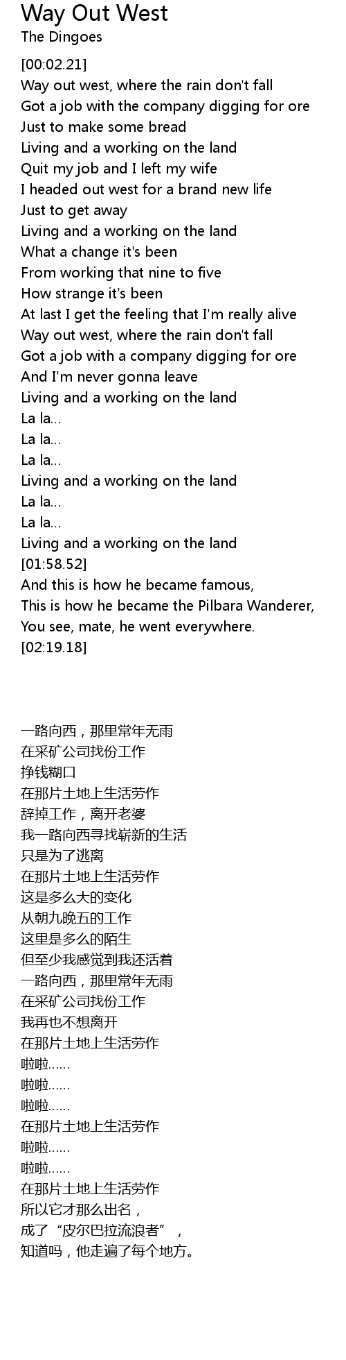 | [00:38.25] | 我一路向西寻找崭新的生活 |