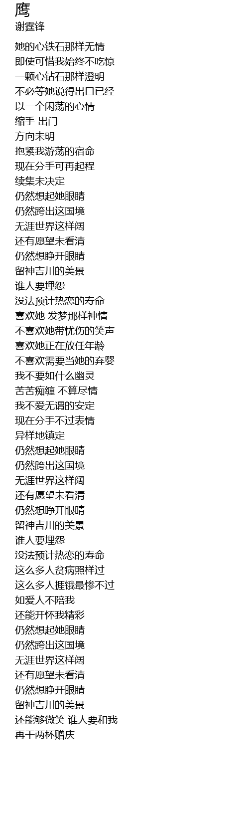| 歌曲 | 鹰 |
