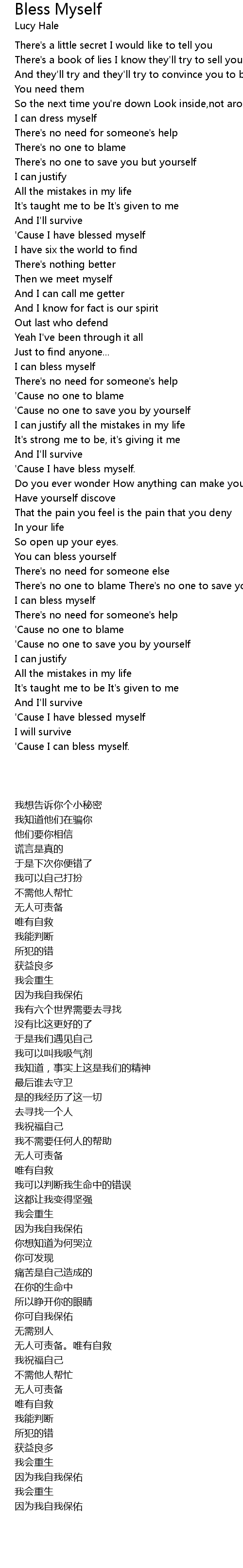 Bless Myself 歌词