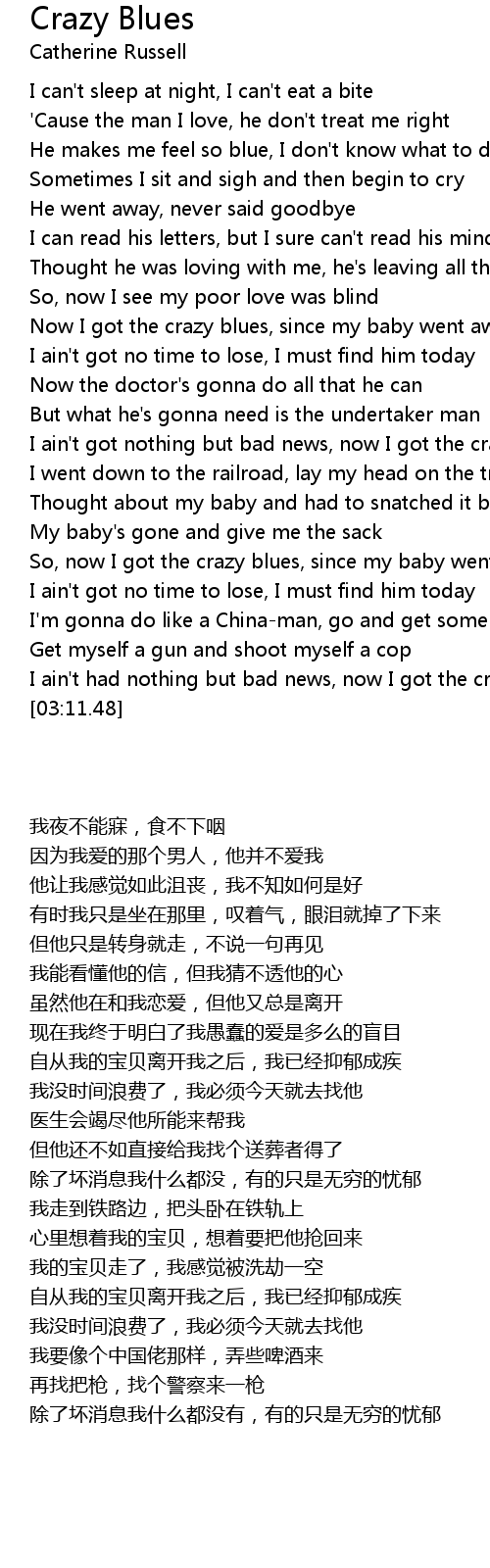 So, now I got the crazy blues, since my baby went away |
