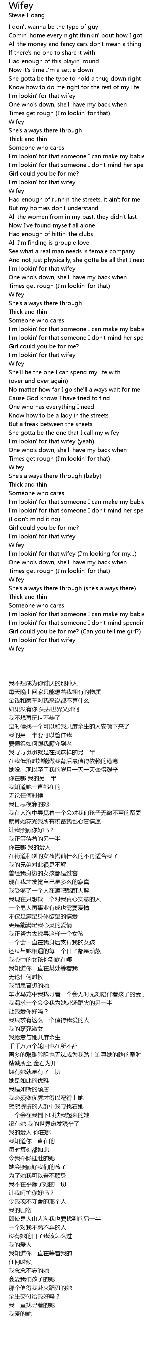 I'm lookin' for that wifey (I'm looking for my...) |