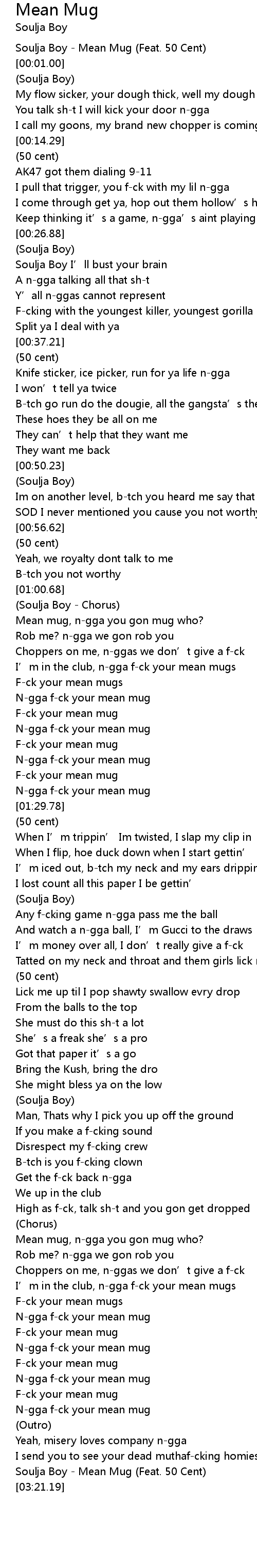 | [03:01.19] | Soulja Boy Mean Mug Feat. 50 Cent |