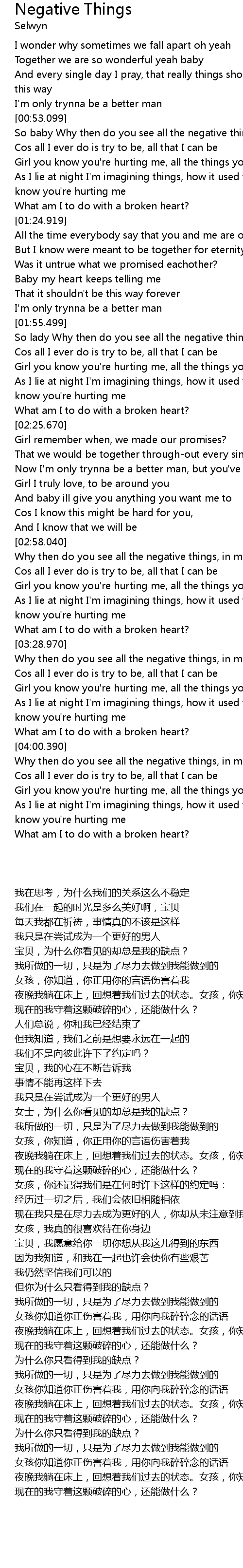 So baby Why then do you see all the negative things, in me? |