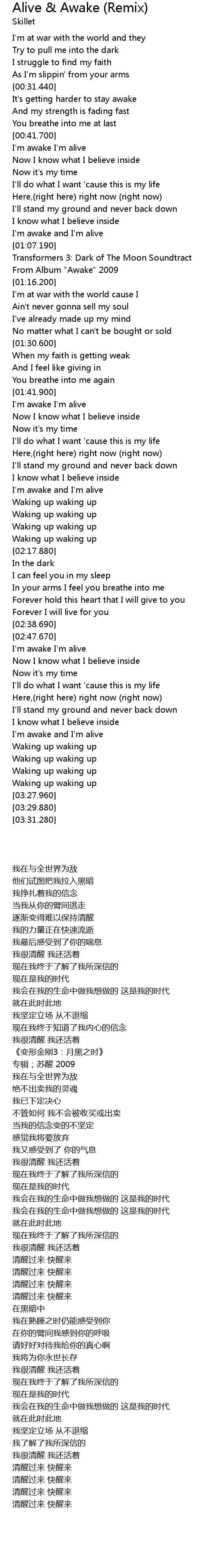 I'm awake and I'm alive |