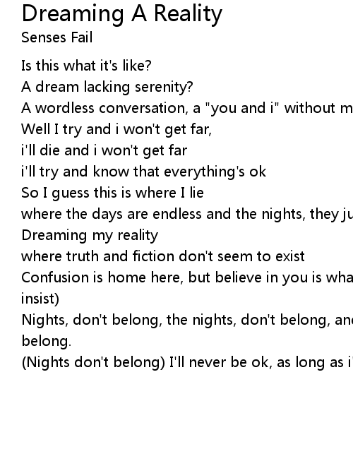 (Nights don't belong) I'll never be ok, as long as i'm dreaming a reality. |