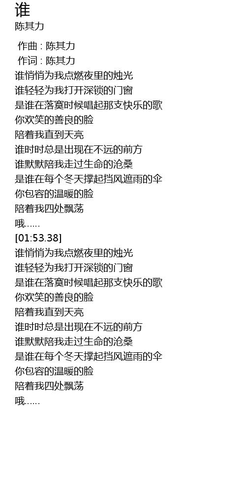 | [00:41.00] | 是谁在落寞时候唱起那支快乐的歌 |