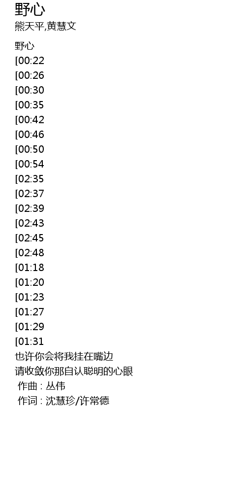 | [00:00.00] | 作词 : 沈慧珍/许常德 |