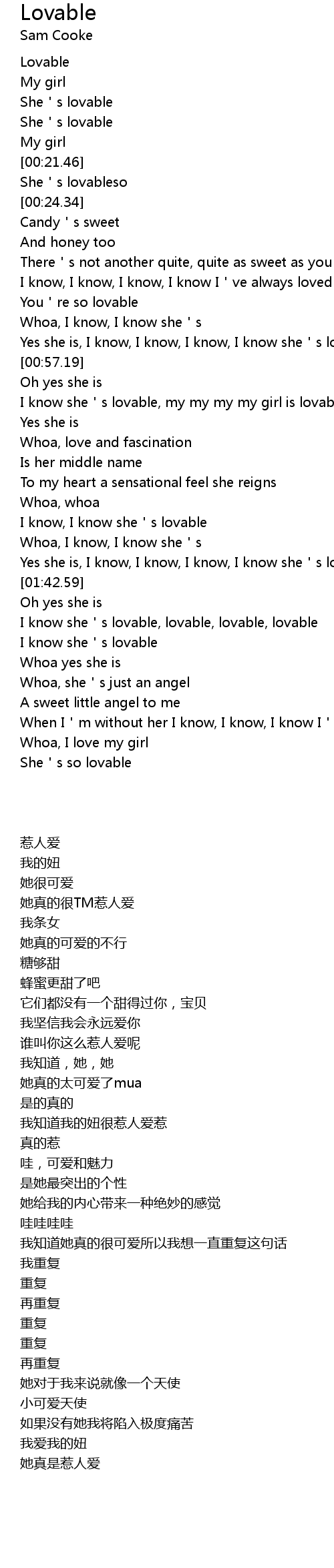 | [01:45.87] | I know she s lovable, lovable, lovable, lovable |