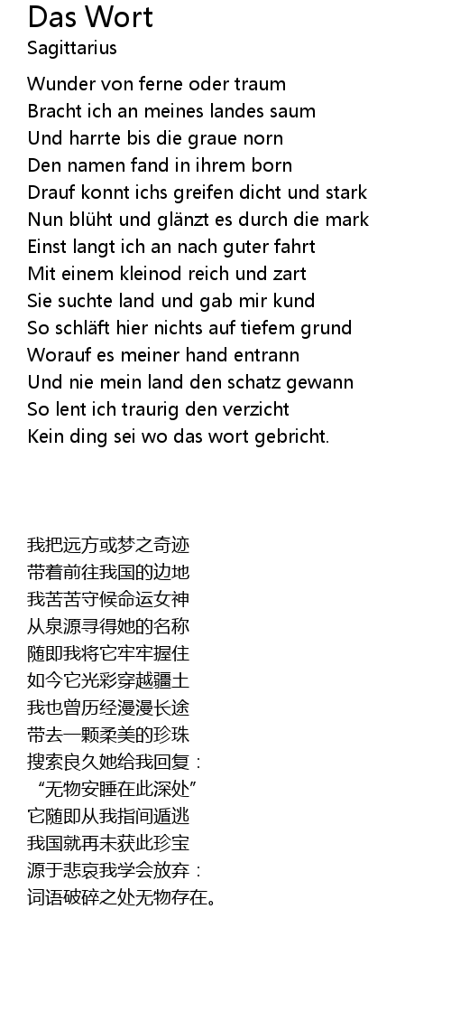 | [02:19.040] | Kein ding sei wo das wort gebricht. |