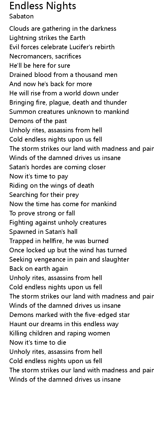Cold endless nights upon us fell |