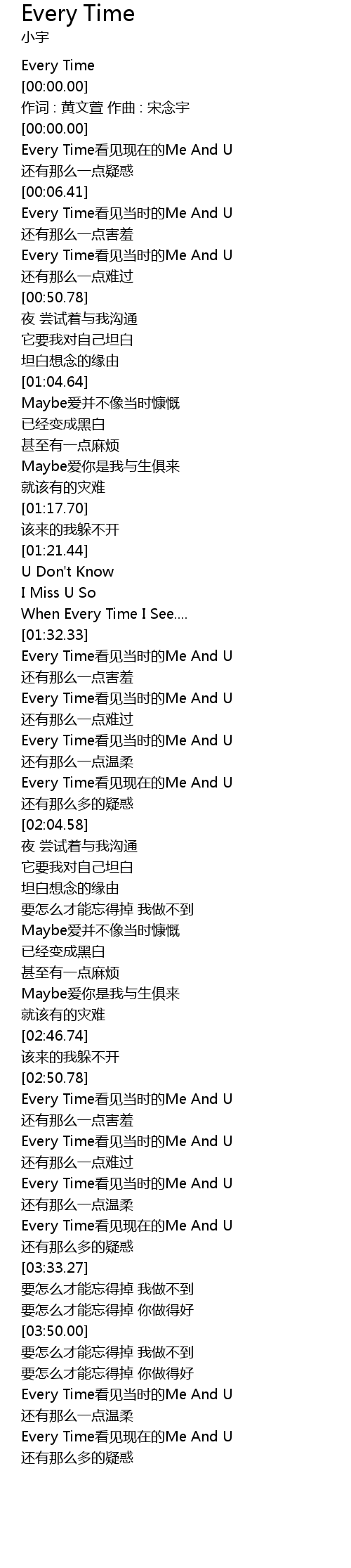| [00:01.50] | Every Time kàn jiàn xiàn zài de Me And U |