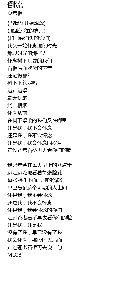 | [01:55.14] | 走过苍老石桥再去看你们的脸 |
