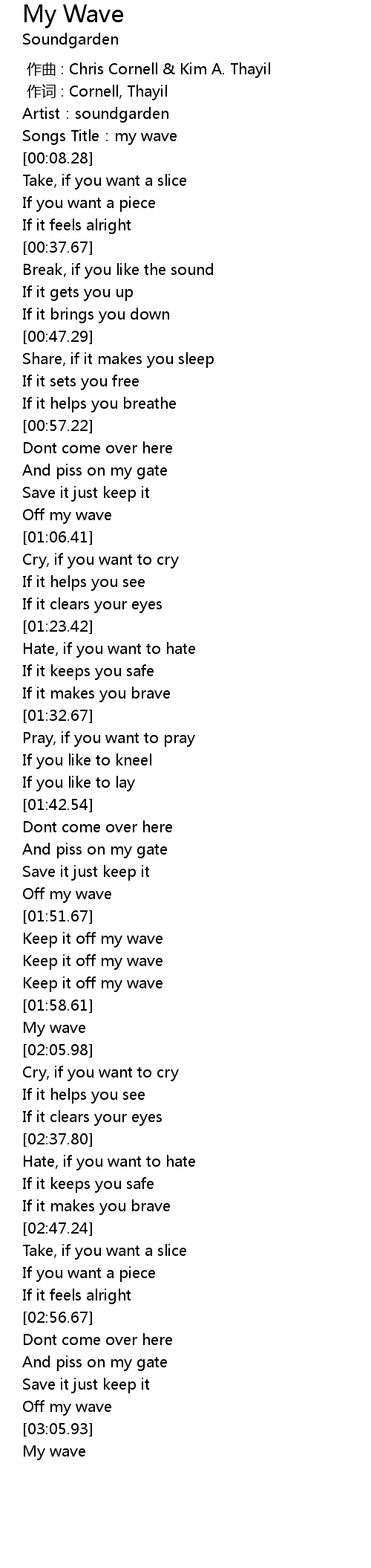 | [00:00.00] | 作曲 : Chris Cornell & Kim A. Thayil |