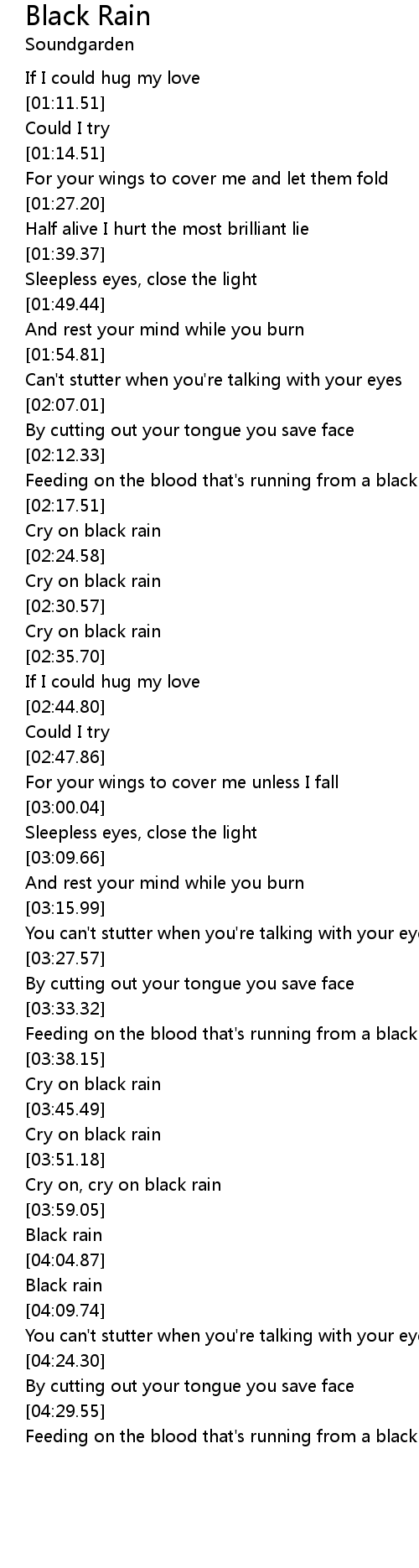 Cry on, cry on black rain |