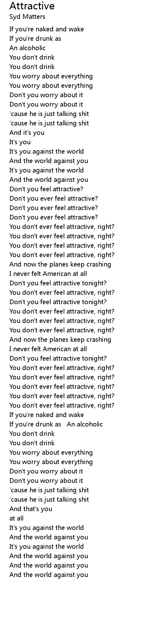 Don't you ever feel attractive? |
