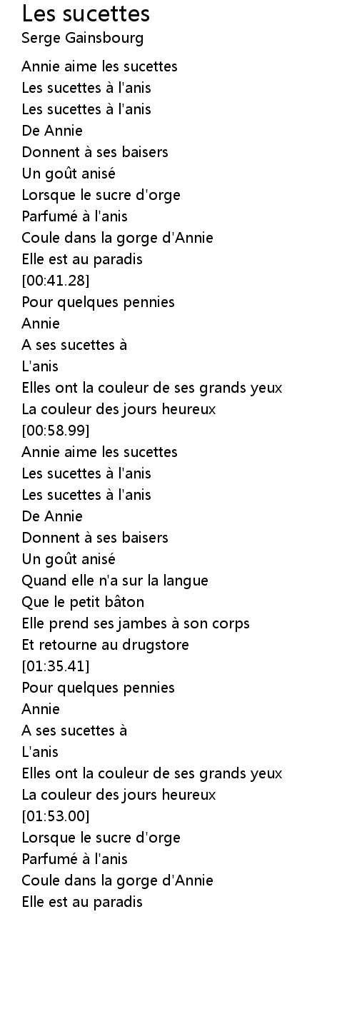 | [01:10.08] | Les sucettes à l'anis |