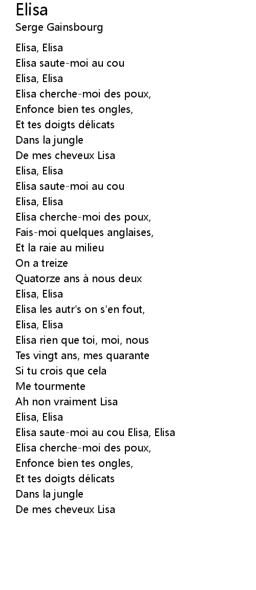 | Elisa cherche-moi des poux, | |