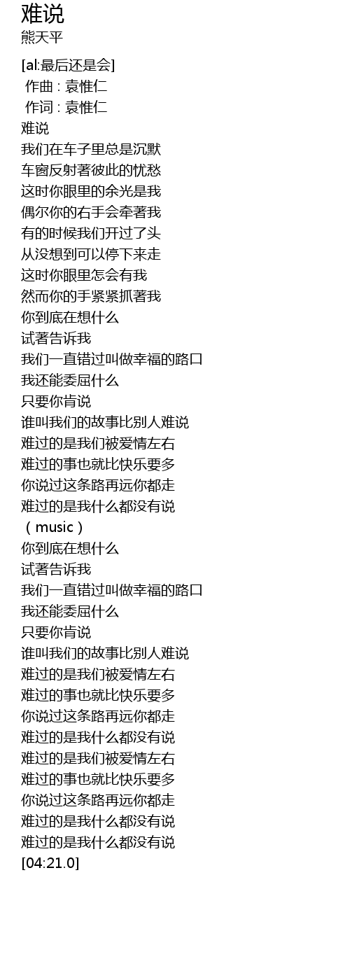 | [04:04.0] | 难过的是我什么都没有说 |
