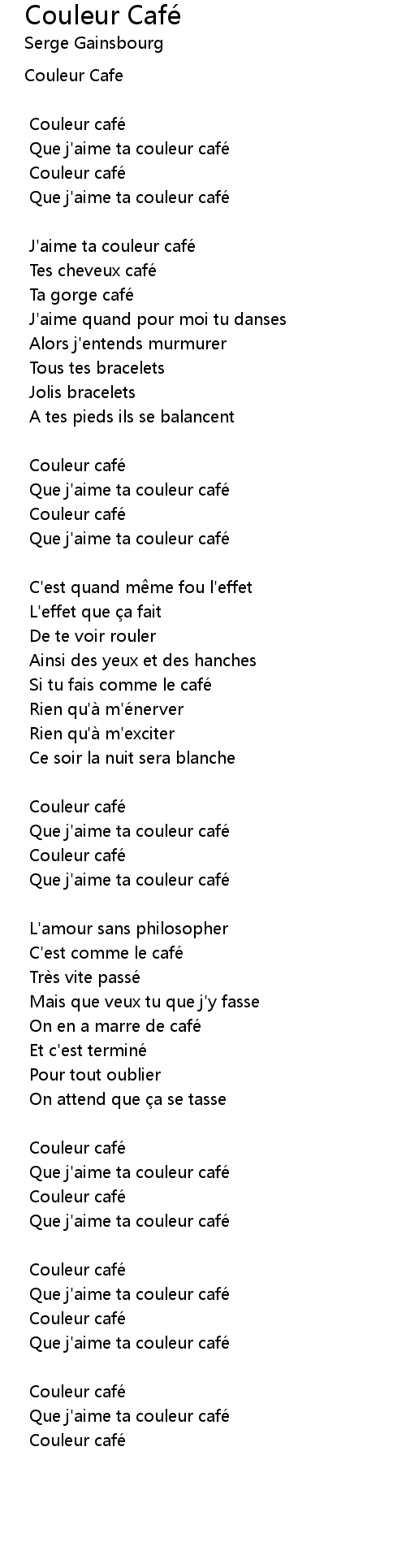 | Que j' aime ta couleur café | |