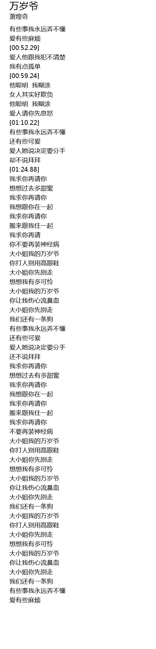 | [03:20.33] | dà xiǎo jiě wǒ de wàn suì yé |