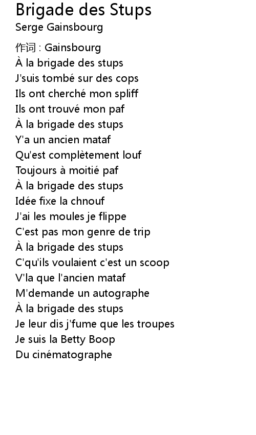 | 歌曲 | Brigade des Stups |